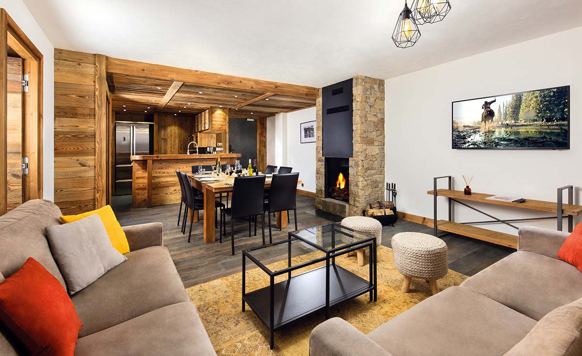 It has a cosy log fire and a balcony with views to shout home about – you get a direct view of the famous Solaise mountain, and its bumps run, so you can sip wine and plan your next day on the slopes.